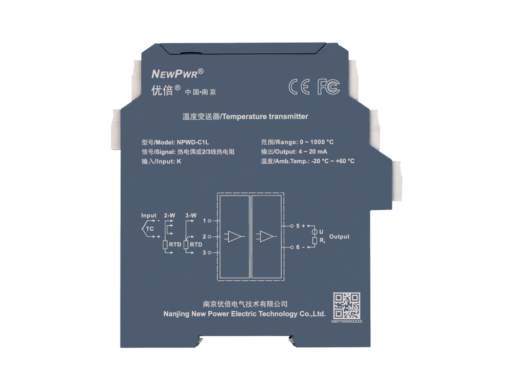 This temperature transmitter converts the thermocouple or thermal resistance signals to 4~20mA signals. It has loop powered. The input and output is galvanically isolated from each other. Calibrate the apparatus or modify parameters by using a handheld programmer.