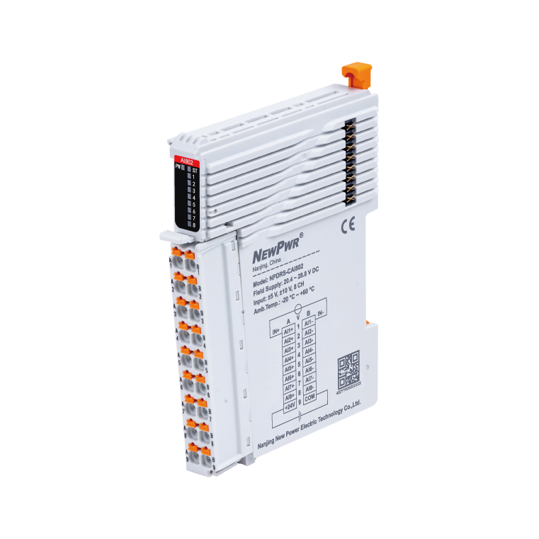 8通道模拟量输入模块, 将现场的直流电压信号, 经隔离转换为数字信号传输到总线耦合器。 本产品实现了输入、总线及I/O电源三端隔离, 具备在线故障诊断功能。可支持输入类型、故障保护模式、滤波时间等参数配置。